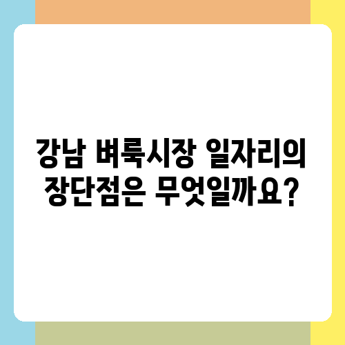 강남 벼룩시장 일자리의 장단점은 무엇일까요?