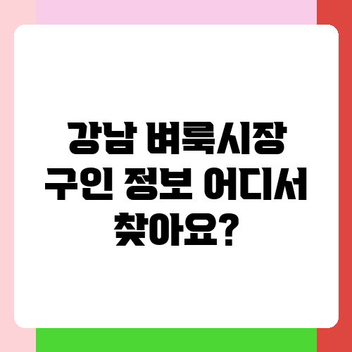 강남 벼룩시장 구인 정보 어디서 찾아요?