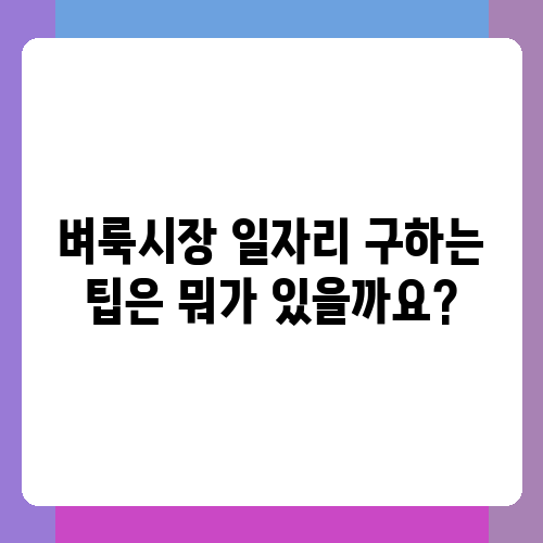 벼룩시장 일자리 구하는 팁은 뭐가 있을까요?