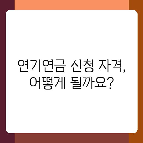 연기연금을 신청하려면 몇 가지 자격 요건을 충족해야 합니다. 우선, 국민연금 가입 기간이 10년 이상이어야 하고요. 그리고 정상적인 노령연금 수급 개시 연령에 도달해야 합니다. 노령연금 수급 개시 연령은 출생년도에 따라 다르다는 점 꼭 기억하세요! 또한, 연금 수령 개시를 연기하고자 하는 기간도 정해져 있으니 국민연금공단에 문의하여 자신의 상황에 맞는 정보를 정확히 확인하는 것이 중요합니다. 혹시 자격 요건이 안 된다고 해서 실망하지 마세요. 자격 요건을 충족하지 못하더라도 다른 노후 준비 방법을 찾을 수 있으니까요!