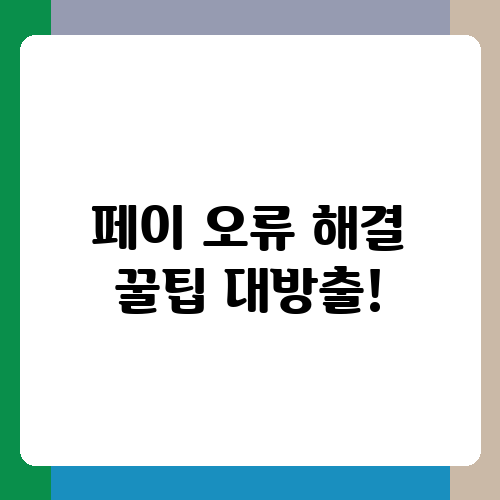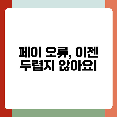 페이를 사용하다가 오류가 발생하면 정말 당황스럽죠. 결제가 안 되거나, 카드 등록이 안 될 때 얼마나 속상한지 저도 경험해 봤어요. 이 글에서는 페이 결제 오류의 흔한 원인과 해결 방법을 알려드리고, 카드 등록 시 주의해야 할 사항까지 꼼꼼하게 정리해 보았습니다. 이 글을 읽고 나면 페이 사용에 대한 자신감이 쑥쑥 올라갈 거예요!