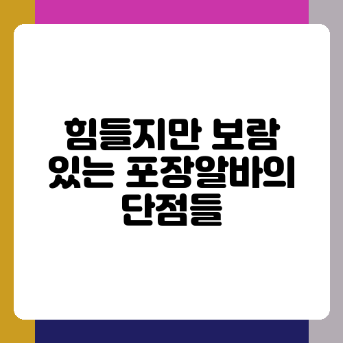 지금까지 포장알바의 장단점과 시급, 그리고 알바를 찾는 팁에 대해 알아보았습니다. 포장알바는 급전이 필요할 때 도움이 되는 유용한 알바지만, 체력적으로 힘든 면도 분명히 있으니 신중한 선택이 필요합니다. 이 글이 여러분의 알바 선택에 도움이 되었기를 바랍니다. 혹시 궁금한 점이 있다면 언제든지 댓글 남겨주세요! 함께 정보를 공유하고 서로 도와가면서 좋은 알바를 찾을 수 있도록 노력해봐요!