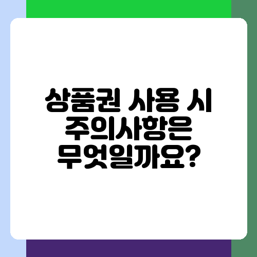 상품권을 사용하실 때 유의해야 할 점들이 몇 가지 있습니다. 먼저, 유효기간을 꼭 확인해야 합니다. 유효기간이 지난 상품권은 사용할 수 없으니, 기간 내에 사용하도록 주의하세요. 또한, 사용 가능한 금액과 사용처를 미리 확인해야 합니다. 상품권 금액보다 구매 금액이 클 경우 차액을 현금이나 다른 결제 수단으로 지불해야 합니다. 그리고, 상품권 분실이나 도난에 유의하여 안전하게 보관하는 것도 중요하겠죠. 마지막으로, 상품권 사용과 관련하여 궁금한 점이 있다면 고객센터에 문의하여 자세한 정보를 얻으시는 걸 추천합니다.
