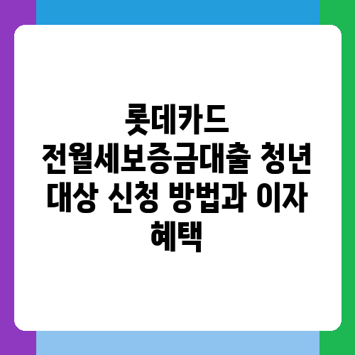 전월세 계약, 설레는 마음과 함께 걱정도 따라오죠. 특히 젊은 세대에게는 목돈 마련이 쉽지 않아 보증금 마련이 큰 부담으로 다가올 수 있습니다. 하지만 롯데카드 전월세보증금대출이 있다면 조금 더 편안하게 새로운 보금자리를 마련할 수 있을 거예요. 이 글에서는 청년들을 위한 롯데카드 전월세보증금대출 신청 방법과 이자 혜택에 대해 자세히 알려드리겠습니다. 꼼꼼하게 읽어보시고, 궁금한 점은 언제든지 문의하세요!