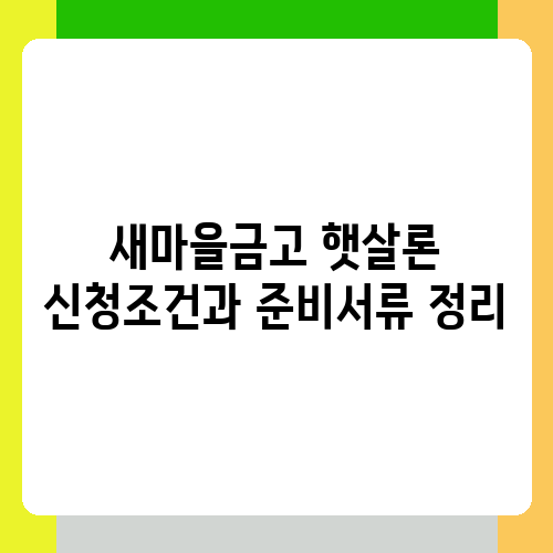 햇살론이 필요하지만, 어디서부터 어떻게 준비해야 할지 막막하셨나요? 저는 많은 분들이 햇살론 신청 과정에서 어려움을 겪는다는 것을 알고 있습니다. 이 글에서는 새마을금고 햇살론 신청 조건과 필요한 서류들을 자세히 알려드려, 여러분의 햇살론 신청 과정을 좀 더 수월하게 만들어 드리고자 합니다. 복잡한 절차에 지치지 말고, 차근차근 함께 준비해 나가요!
