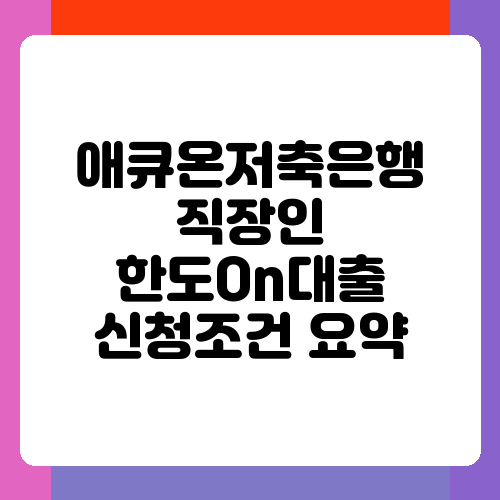 직장인이라면 누구나 급하게 필요한 자금이 생길 수 있습니다. 갑작스러운 의료비 지출이나 생활비 부족 등 예상치 못한 상황에 직면했을 때, 빠르고 간편하게 대출을 받을 수 있다면 큰 도움이 되겠죠. 애큐온저축은행의 직장인 한도On대출은 바로 그런 분들을 위해 마련된 상품입니다. 오늘은 직장인 한도On대출의 신청 조건을 자세히 알아보고, 신청 전 꼭 확인해야 할 사항들을 꼼꼼히 살펴보도록 하겠습니다. 편안한 마음으로 쭉 읽어보시면 도움이 될 거예요.