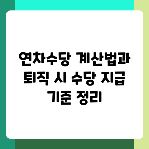 연차 휴가, 다들 잘 사용하고 계신가요? 회사 생활을 하다 보면 누구나 한 번쯤 연차 수당과 퇴직 시 받게 될 퇴직금에 대해 궁금증을 느낄 거예요. 하지만 복잡한 법률과 회사 내규 때문에 정확하게 계산하고 제대로 받는 게 생각보다 어렵더라고요. 이 글에서는 연차 수당 계산 방법과 퇴직 시 수당 지급 기준을 쉽고 명확하게 정리해 드릴 테니, 꼼꼼하게 읽어보시고 궁금증을 해결해 보세요. 내 권리를 챙기는 현명한 직장 생활을 위한 첫걸음이 될 거라고 생각합니다.