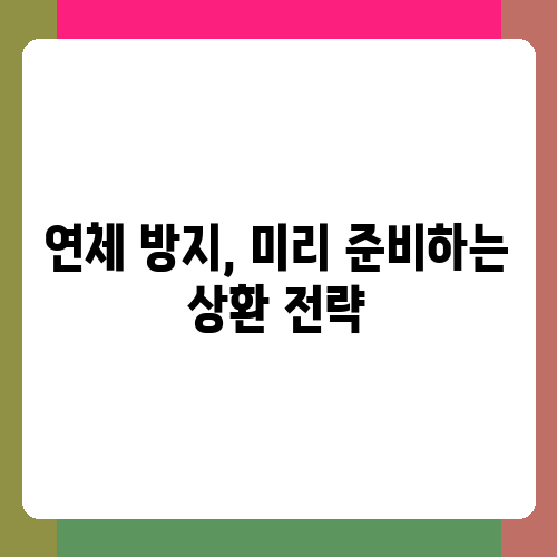 연체를 예방하는 가장 좋은 방법은 미리 상환 계획을 세우는 것입니다. 매달 상환해야 하는 금액을 정확하게 파악하고, 예산을 미리 계획하여 상환일에 충분한 금액을 준비해야 합니다. 만약 예상치 못한 지출이 발생할 경우를 대비하여, 비상금을 마련해 두는 것도 좋은 방법입니다. 자동이체 서비스를 이용하면 상환일을 잊어버리는 실수를 방지할 수 있습니다. 또한, 여러 개의 대출을 관리하고 있다면 대출 관리 어플이나 엑셀을 이용해서 상환 일정을 체계적으로 관리하는 것을 추천합니다. 혹시라도 상환에 어려움을 느낀다면, 대출 기관에 연락하여 상환 유예나 분할 상환 등의 조치를 문의해 보세요. 미리 대비하고 적극적으로 대처하는 것이 연체를 예방하는 가장 중요한 핵심입니다.