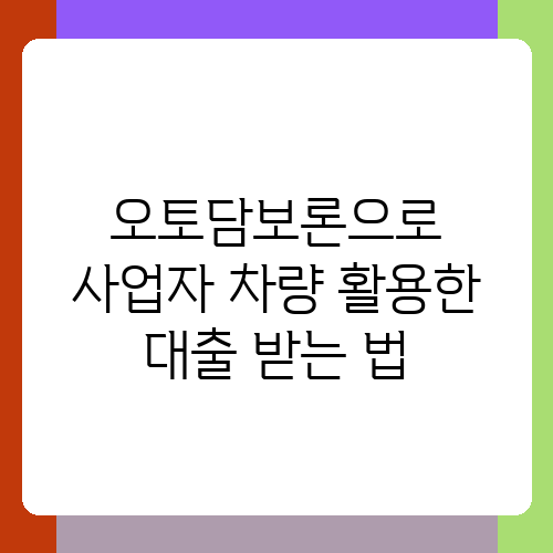 사업을 운영하면서 자금이 부족할 때, 사업자 차량을 활용한 대출을 생각해보신 적 있으신가요? 자신의 사업에 필요한 자금을 마련하기 위해 여러 가지 방법을 고민하시는 분들께 오토담보론이 좋은 대안이 될 수 있습니다. 오토담보론은 사업자 차량을 담보로 제공하여 대출을 받는 방식인데요, 어떤 절차를 거쳐야 하고, 어떤 점에 유의해야 하는지 자세히 알아보도록 하겠습니다. 잘 준비하시면 생각보다 쉽게 대출을 받으실 수 있을 거예요.