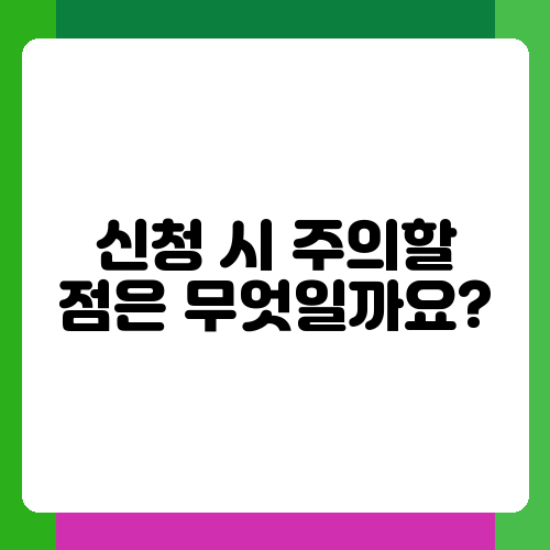 신청 과정에서 가장 중요한 것은 정확한 정보 제공입니다. 잘못된 정보를 기재하거나 필요한 서류를 누락하면 신청이 거부될 수 있습니다. 신청 전에 담당 기관에 연락하여 필요한 서류와 절차를 미리 확인하고, 정확하게 준비하는 것이 중요합니다. 또한, 신청 기간을 꼭 확인해야 합니다. 기간 내에 신청하지 않으면 지원을 받을 수 없으니 유의하세요. 그리고 신청 후에는 담당자에게 문의하여 진행 상황을 확인하는 것도 좋습니다. 무엇보다 궁금한 점이 있다면 언제든지 담당 기관에 문의하여 도움을 받을 수 있다는 점을 기억하세요.