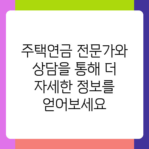 주택연금 전문가와 상담을 통해 더 자세한 정보를 얻어보세요