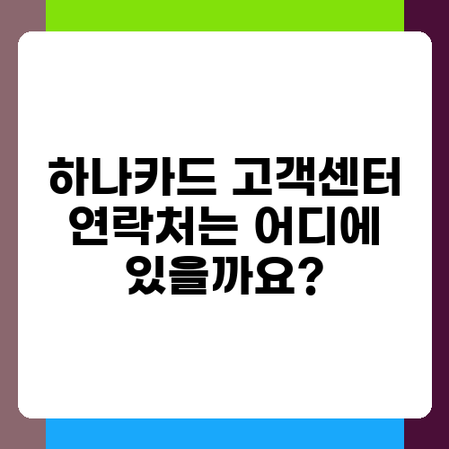 하나카드 고객센터 연락처는 어디에 있을까요?