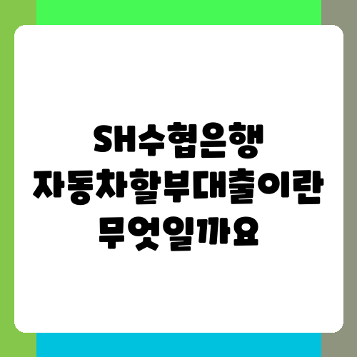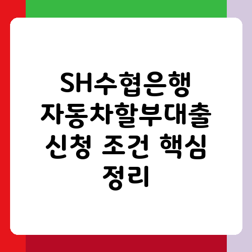 자동차 구매는 큰 결정이죠. 새 차의 설렘과 함께 꼼꼼하게 준비해야 할 부분들이 많다는 것도 알고 계실 거예요. 그 중에서도 가장 중요한 부분 중 하나가 바로 자동차 할부대출입니다. 오늘은 SH수협은행 자동차할부대출 신청 조건에 대해 알아보고, 좀 더 쉽고 빠르게 대출을 받을 수 있도록 자세하게 설명해 드릴게요. 어렵게 생각하지 마세요! 함께 하나씩 살펴보면 어렵지 않답니다.